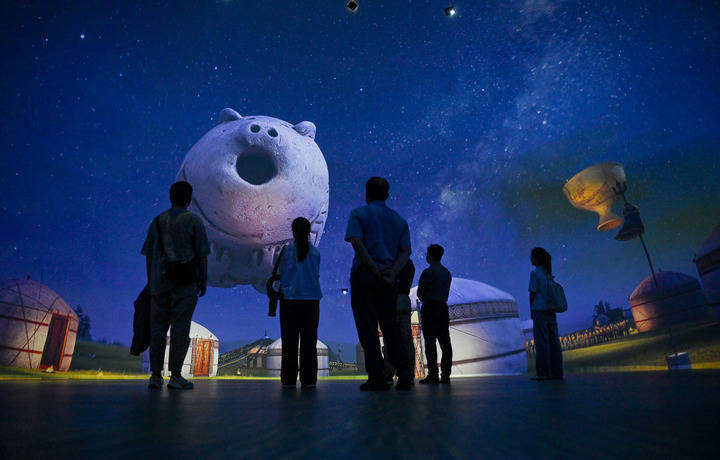 8月10日,游客在通辽市扎鲁特旗南宝力皋吐遗址博物馆参观。库伦旗银沙湾、哈民遗址、科左后旗大青沟、乌旦塔拉枫林、科左后旗草干自驾车露营地……近几年来,串联全市100余处景点的科尔沁500公里风景大道,串联起通辽的南北古今,成为游客的“心头好”。